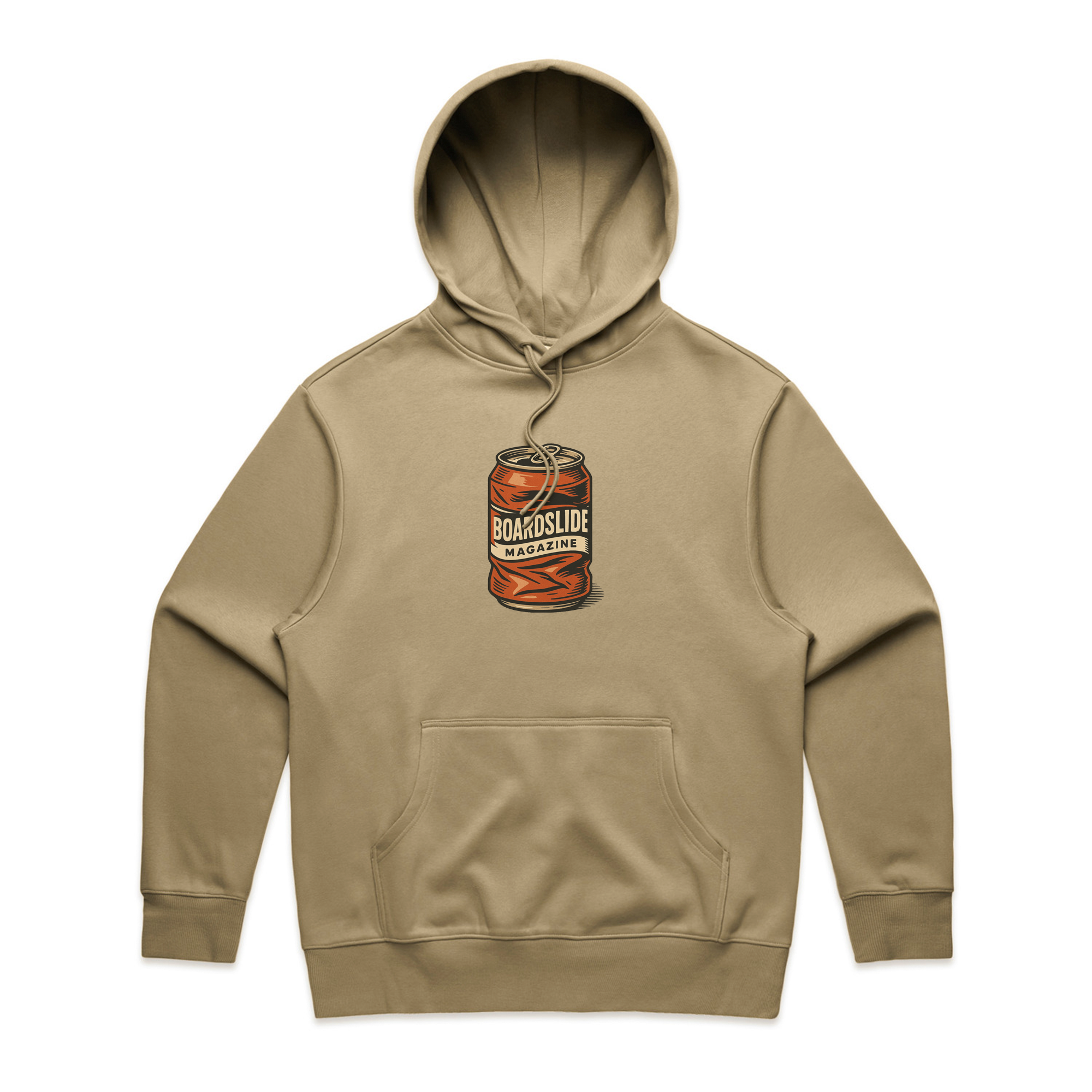 The Boardslide Magazine Beer Hoody. Tailored in a premium 11.8 oz heavy weight cotton-rich blend with an oversized, baggy fit. Featuring inset sleeves, draw cords, a cozy pullover hood with self-fabric lining, and 2x2 ribbing on the cuffs and hem.